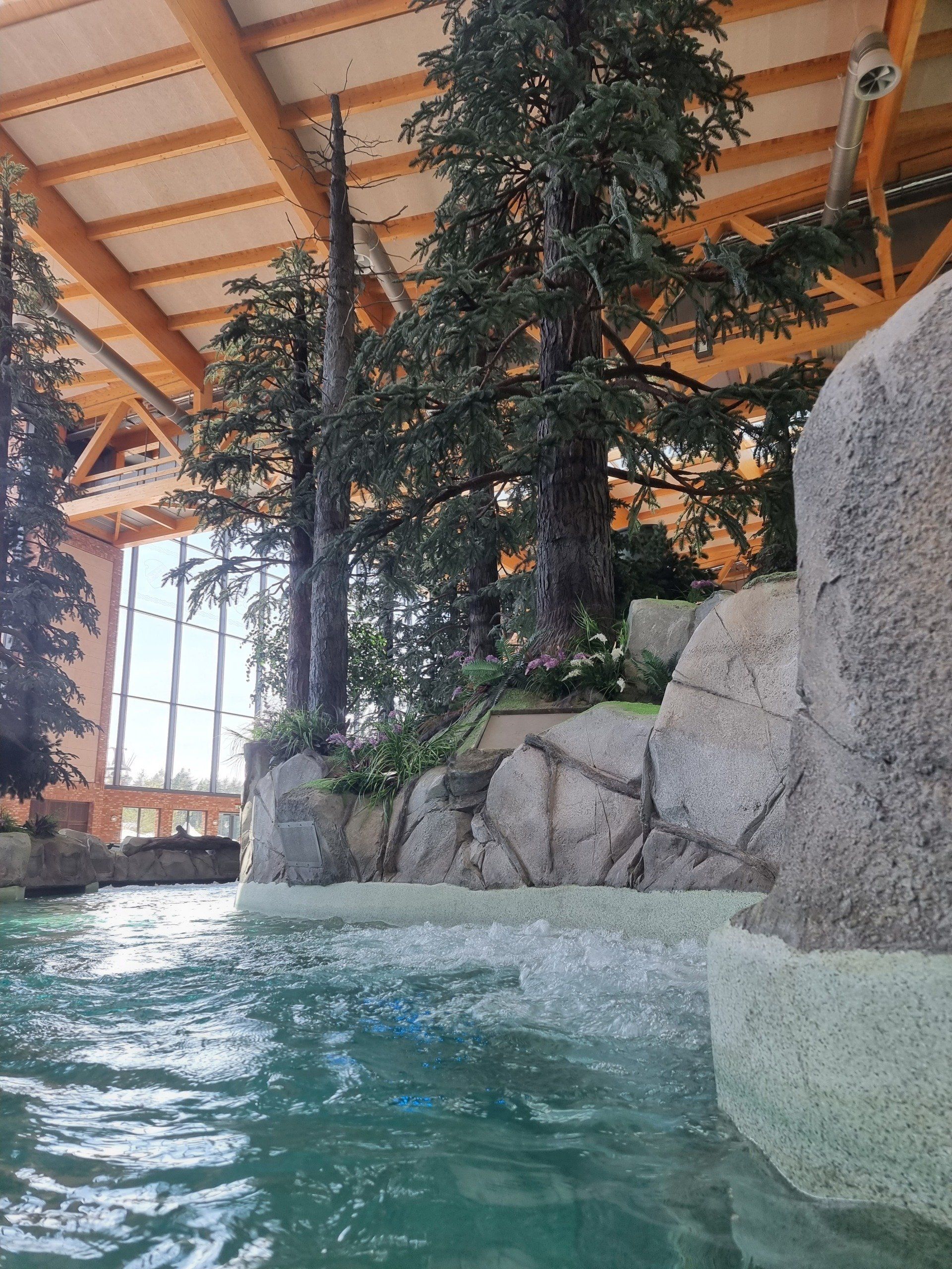 Neben den Rutschen gab es auch noch einen Schnellstrom, den man ohne Reifen bezwingen musste. Obwohl man dabei fast ertrinkt und 5 Liter Chlorwasser inhaliert, konnten wir nicht genug von der Sause bekommen. Auch lustig war die Wettrenn-Rutsche, bei der aber irgendwie ganz klar die eine Bahn gewonnen hat. Oder das Duo, was eine Sekunde früher los kommt. Ausreden gibt es immer. Dann gab es noch eine Half-Pepe-Rutsche, die wir zu 4. gefahren sind. Erst dachte ich, dass das ja ganz angenehm wäre, bevor es plötzlich mit einem Satz nach unten ging und dann bis fast unter die Decke. Ich bin da auch ein absolutes Schrei-Kind, ich muss kreischen als wenn jemand mit der Kettensäge hinter mir her ist. Aber wenn man draufgehen sollte, dann wenigstens mit Getöse.