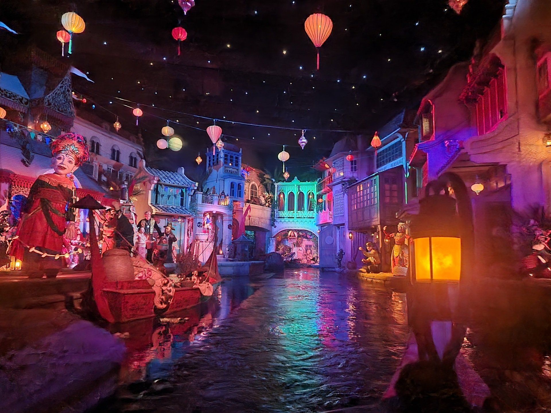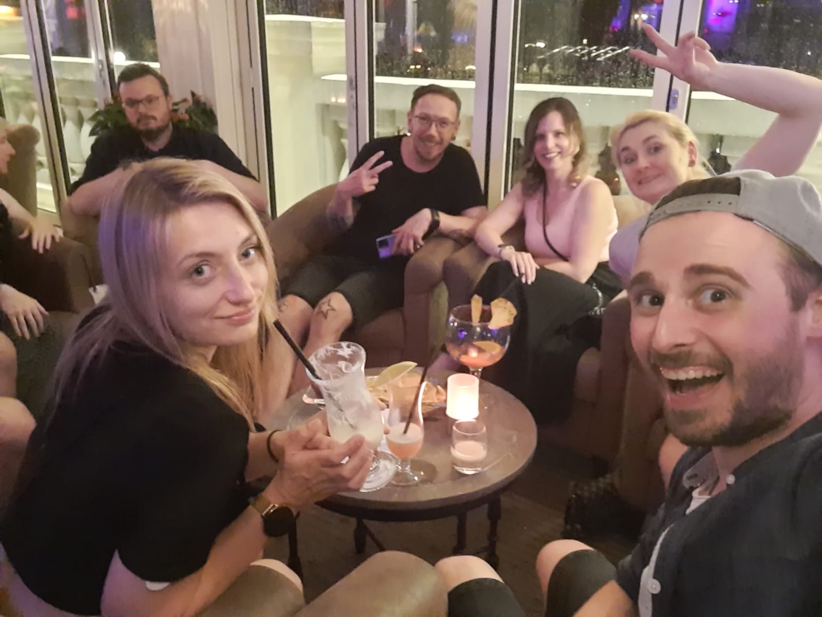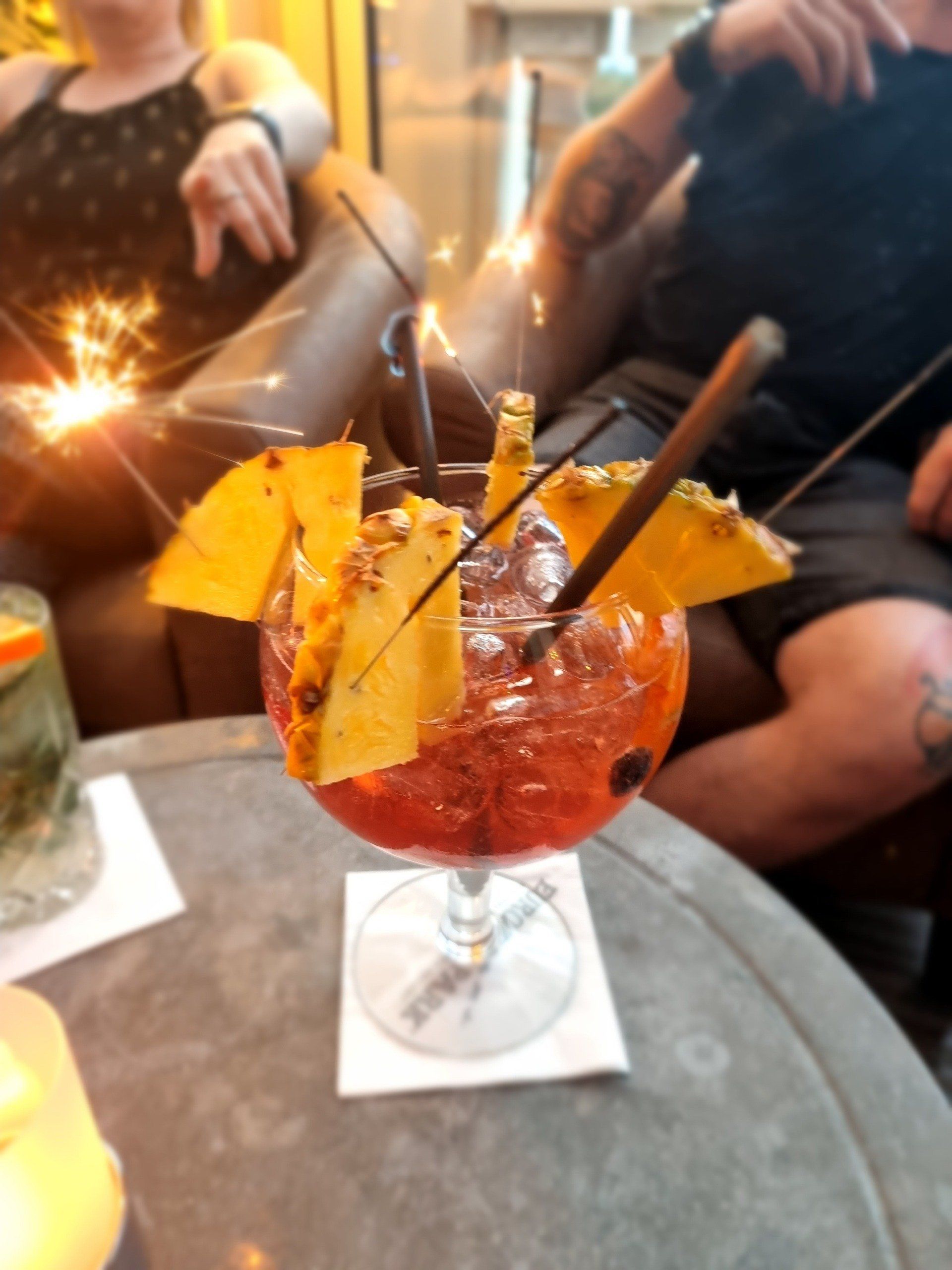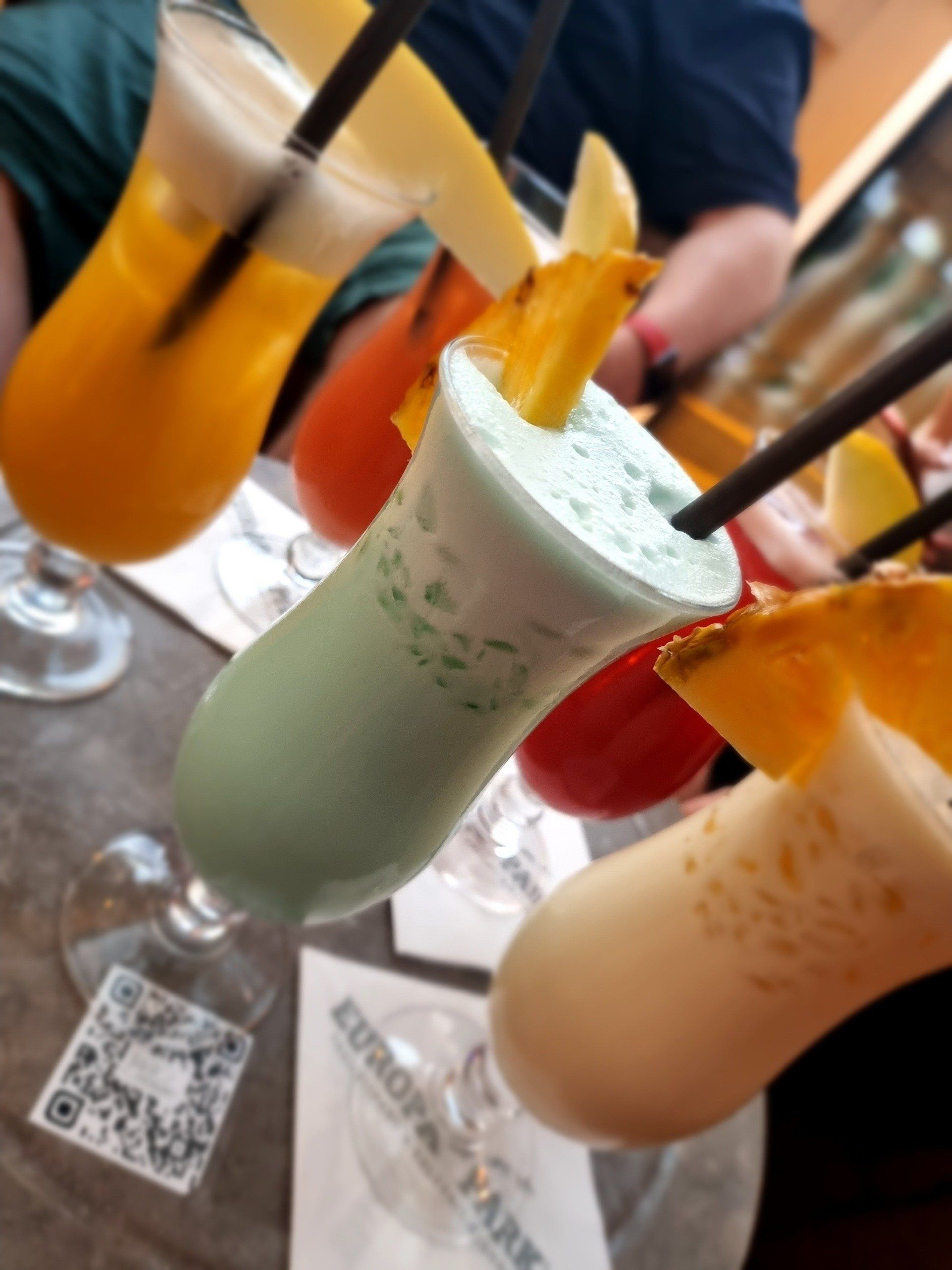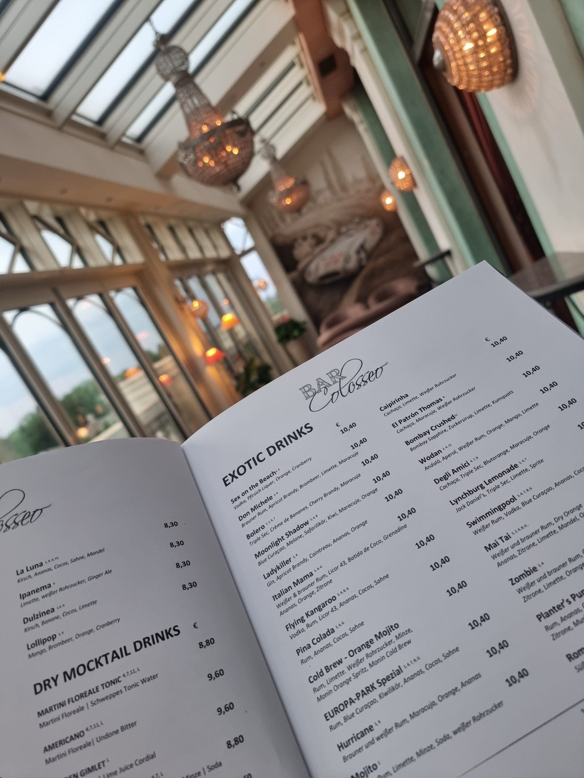 Tag 1 ging damit zu Ende, dass wir in ein Restaurant gingen, wo wir uns noch mit zwei anderen "Freunden" trafen. Ich mag so etwas immer sehr gerne, neue Leute kennenzulernen. Deswegen habe ich ja auch meinen neuen Job als "Gästebetreuung" gewählt. Es gibt so viele spannende Geschichten hinter den Menschen zu hören, das fasziniert mich. Fasziniert hat mich auch, dass man in dem Restaurant alles per QR-Code bestellt und auch direkt mit Paypal bezahlen kann. 21. Jahrhundert und so. Das Essen war auch dort sehr lecker und nach dem Schmaus fuhren wir zum Parkhotel Colosseum, um dort in die Hotelbar einzufallen. Auch dort kamen noch mehrere dazu und es war sogar der DJ aus dem Rulantica wieder am Start. Nicht fehlen durfte natürlich mein Pina Colada, obwohl ich zunächst einen anderen Cocktail wählte, den ich in glorreicher Erinnerung hatte. Leider war der 1. total eklig und 2. hat er wirklich rein geknallt. Nach dem folgenden Pina Colada musste ich mir dann um 23:00 Uhr erstmal ein Eis holen. War eine super Idee. Anschließend wollte ich Popcorn, doch das schien es nirgends zu geben. Kevin begleitete mich auf meiner Suche und so zogen wir los durch die verschiedenen Hotels, erklimmten das Colosseum, fanden eine extrem unheimliche Kapelle und einen Wassertrimmpfad. Nur Popcorn fanden wir nicht.