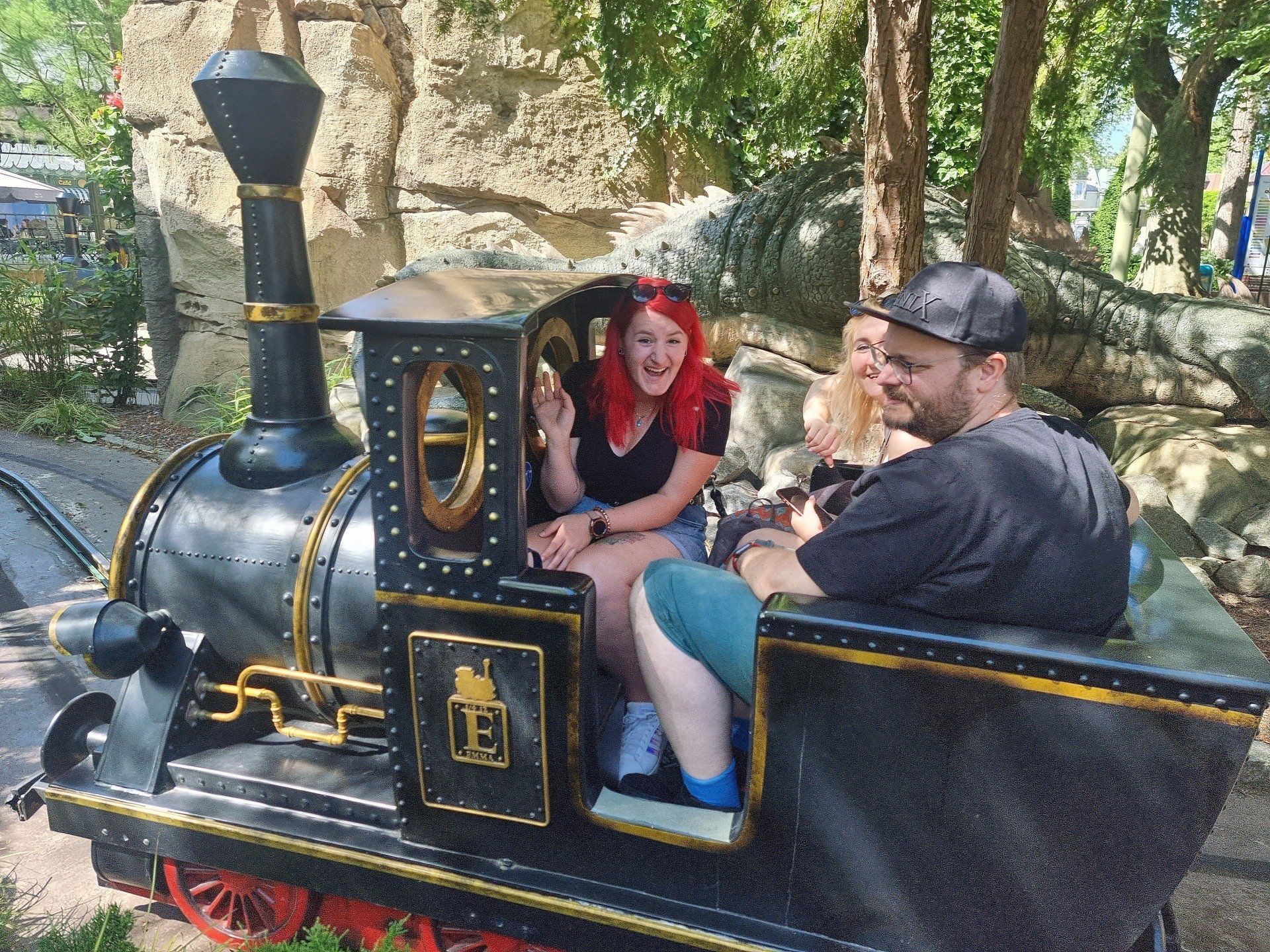 Samstag klingelte der Wecker wieder um die selbe Uhrzeit. Schnell in den Spa, runter zum Frühstück und ab zum Europapark. Natürlich war uns bewusst, dass es an diesem Tag voll werden würde im Park, weswegen wir von Anfang an versuchten, Zeittickets für die großen Attraktionen zu buchen, also virtuell line. Da bekommt man dann eine Zeit vorgegeben, zu der man ohne groß anstehen zum müssen, fahren kann. In der Zwischenzeit fuhren wir Eisenbahn, Floßfahrt oder stellten uns bei Piraten von Batavia an, bevor wir das Mittagessen in einem asiatischen Restaurant einnahmen, in dem man sich seine eigene Bowl zusammenstellen konnte. Sehr lecker! Wie schon gesagt, das Essen im Park ist wirklich fantastisch. Auch heute hatten wir wieder herrliches Wetter, 26 Grad und Sonnenschein. Mein Highlight an diesem Tag bleibt, dass uns jemand in der Bar am Vortag gesagt hat, dass der Knopf in der einen Achterbahn "Arthur und die Minimoys" tatsächlich eine Bewandtnis hat. Da hat jeder Sitz einen Knopf, mit dem er an einer Stelle der Fahrt interagieren kann. Ich dachte immer, das sei nur ein Scherz also so aus Spaß an der Freude. Tatsächlich entschiedet aber die Anzahl der gedrückten Knöpfe darüber, wie der Verlauf der Fahrt aussehen wird. Hä? Also wenn man 1x pro Wagen drückt, vibriert der Sitz, ab dem 2. Mal drücken dreht sich der Wagen um 45 Grad. Bei 5x drücken fährt man rückwärts. Klar, dass ich wie besessen davon war, das auszuprobieren oder? Also anstellen, warten und ausprobieren! In einem Wagen sitzt man immer zu 4. also mussten wir vorher abkaspern, wer wie oft drückt, dass wir insgesamt nur 5x drücken. Meine Freunde entschieden, dass sie 1x drücken und ich sollte 2x drücken. Wir gelangten an die Stelle, wo der Knopf anfing zu leuchten und meine Freunde drückten im Chor "1!" und ich "1, 2!" und als die Wagen weiterfuhren, schrieen wir vor Freude auf, als sich unser Wagen tatsächlich drehte und wir rückwärts fuhren. Das war ein tolles Erlebnis und ich musste an diesem Abend noch öfters darüber sprechen.