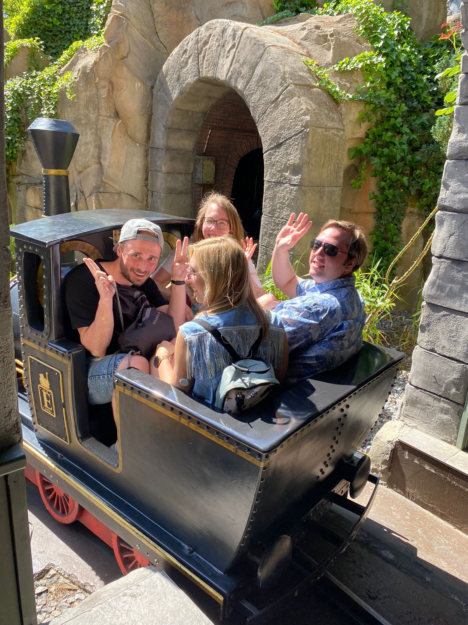 Nachdem wir uns alle gestärkt hatten, fuhren wir mit unserem Bus zum Park und freuten uns wie Honigkuchenpferde, als wir den Eingang vom Park erreichten. Als erstes ging es nach Einlass in die Attraktion "Voletarium". Meine Freunde prophezeiten mir bereits, dass ich es lieben würde und ja, das tu ich. Einen Flug über Europa in einer Art Kinosaal mit XXXXXL Leinwand und Sitzen, die sich "in der Luft" bewegen. Dazu Nebel und Duft, super! Naja und dann ging es natürlich erstmal in die ganzen Achterbahnen. Mit einer hübschen, pinken Vomex Tablette intus bezwang ich mutig die Achterbahnen. Gut, ich kenne die ja nun auch schon, von daher war es nicht so "oh Gott oh Gott" aber mein Magen macht diesen Spaß leider einfach nicht mehr so mit. Da reicht mittlerweile schon Schaukeln im Kindergarten. Am besten Gefallen hat mir glaube ich unsere Raifting Tour, weil wir so richtig nass geworden sind. Und damit meine ich auch so RICHTIG! Gut, dass wir 32 Grad und knalligen Sonnenschein hatten. Der Park war so gut wie leer, nirgends mussten wir länger als 5 Minuten warten, höchstens mal 10 Minuten bei Silver Star und dennoch ist der Park so unglaublich riesig, dass wir nicht alle Attraktionen an einem Tag fahren konnten. Mittags aßen wir Fisch im Themenbereich "Skandinavien", dazu für mich natürlich wieder einen Salat. Nicht, weil ich bloß kein Gramm zunehmen darf, sondern eher, weil die Poffertjes zuvor meinen Zucker schon wieder auf Hochtouren brachten. 😅 Der ist ja leider auch immer dabei und gibt seinen Senf dazu. Und Poffertjes scheint er nicht so zu mögen. Pech, ich aber. Etwas enttäuschend, dass man sie in Holland wohl scheinbar nicht mit Likör isst, so wie ich es sei jeher kenne aber gut, ohne war es auch in Ordnung.