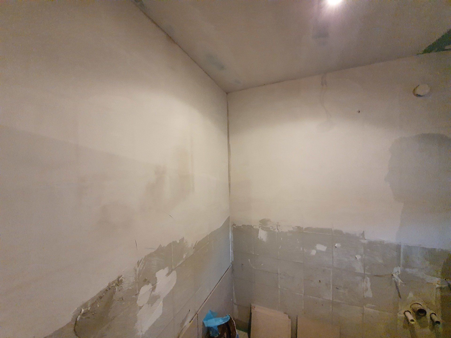Während der Fliesenleger nun loslegen konnte, machte sich auch der Maler an seine Aufgabe, die Wände sowie die Decke zu verputzen, zu schleifen und zu streichen. Zwischendurch kam auch ein Elektriker spontan vorbei, der uns noch schnell die Steckdose versetzte und eine Doppelsteckdose draus macht. Das alles hat sich bis jetzt aber auch Wochen in die Länge gezogen, also es ging nicht klack, klack, klack, sondern richtig Endspurt hatten wir nun seit ca. 9 Tagen, als es erst hieß, meine Oma würde am 22.03. von der Reha nach Hause kommen, dank einer Verlängerung dann aber doch erst am 29.03. und ja, die letzten Handgriffe sind tatsächlich erst kurz vorher fertig geworden aber dazu gleich mehr. Ich war jedenfalls direkt noch begeisterter von den Fliese als schon zuvor und konnte mich gar nicht mehr satt sehen. Das wird Oma gefallen! Davon war ich die ganze Zeit mehr als überzeugt von.