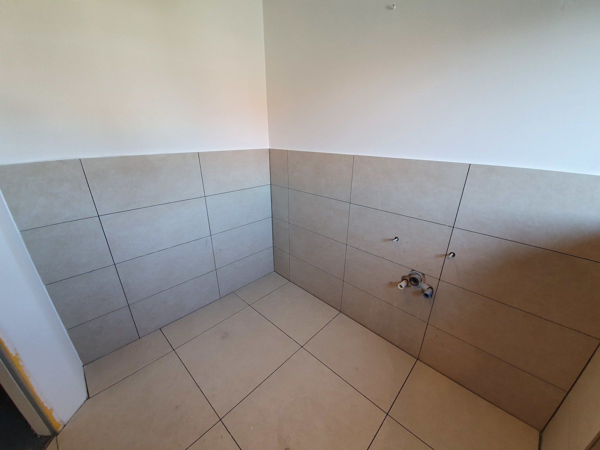Nachdem nun alle Fliesen an ihrem Platz waren, wurde ordentlich verfugt. An den Wänden nahmen wir dafür einen hellen Ton namens Jasmine, ebenso das Silikon an den Wänden und für den Boden nahmen wir einen Grauton, um das Ganze ein wenig farblich abzuheben. Und, könnt ihr euch das nun auch schon richtig gut vorstellen? Das ist wirklich wahnsinn, wenn nach so vielen Tagen Baustelle ganz plötzlich endlich was sichtbar wird also optisch schön. Nebenbei war es nun auch an der Zeit, die ganze Wohnung wieder auf Vordermann zu bringen, denn der Dreck und der Staub war wirklich überall, fragt nicht nach Sonnenschein!. Und nun wurden ja auch alle Läden und Baumärkte geschlossen also hatten wir wirklich extrem viel Glück!